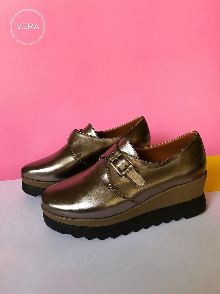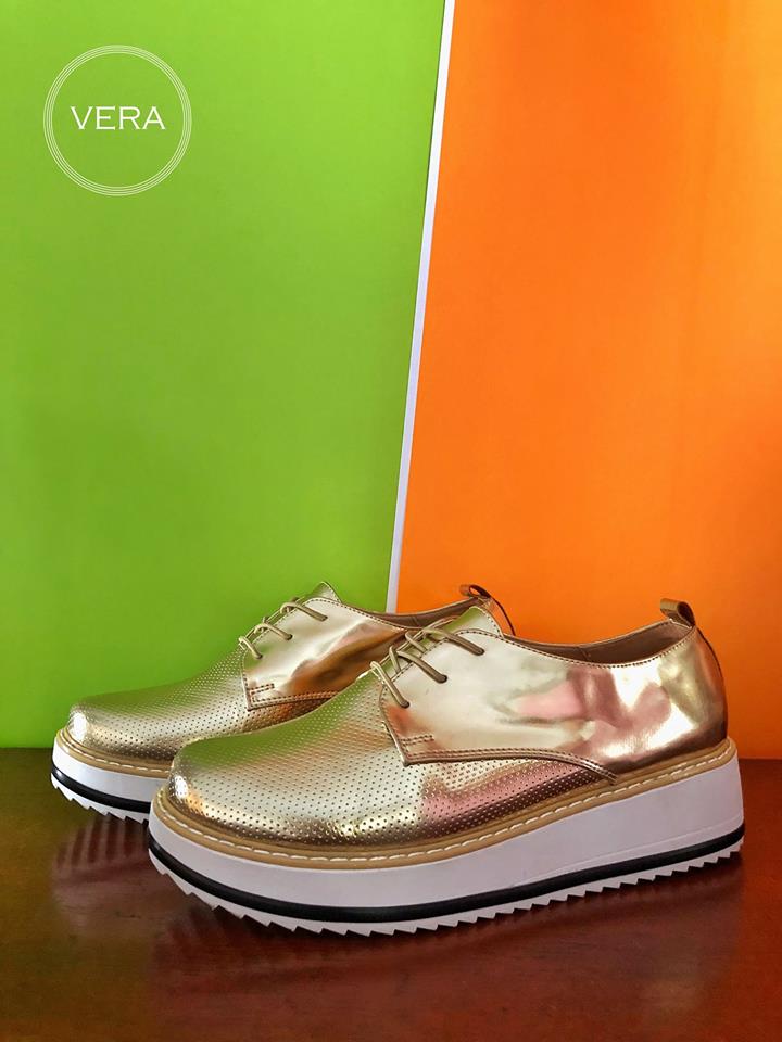 E M M A, Un estilo infaltable para esta temporada. Con plataforma brown y diseño de pasadores en bronce.