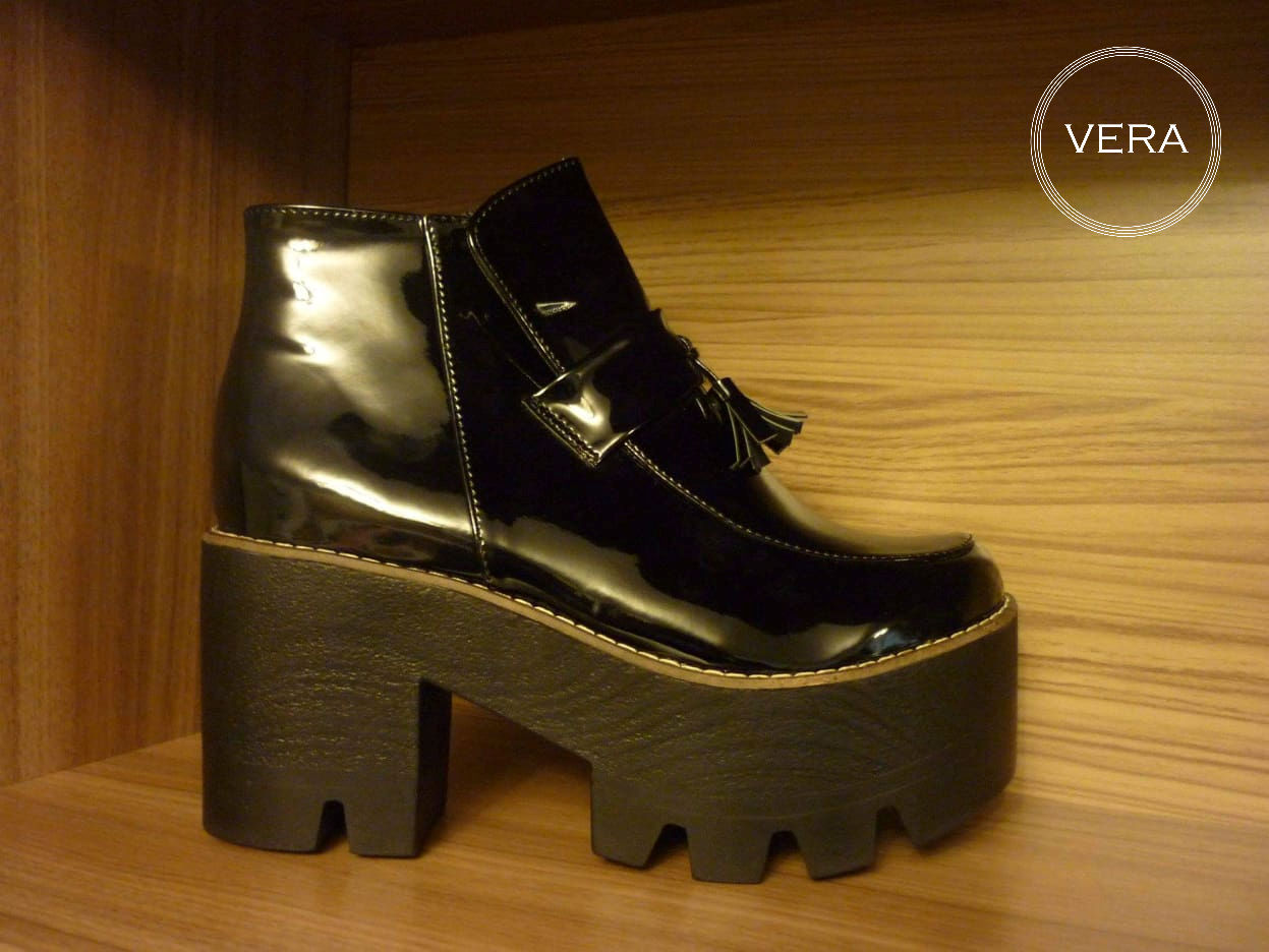 A N T O N I A, Un estilo moderno para esta temporada. Con plataforma y diseño negro.